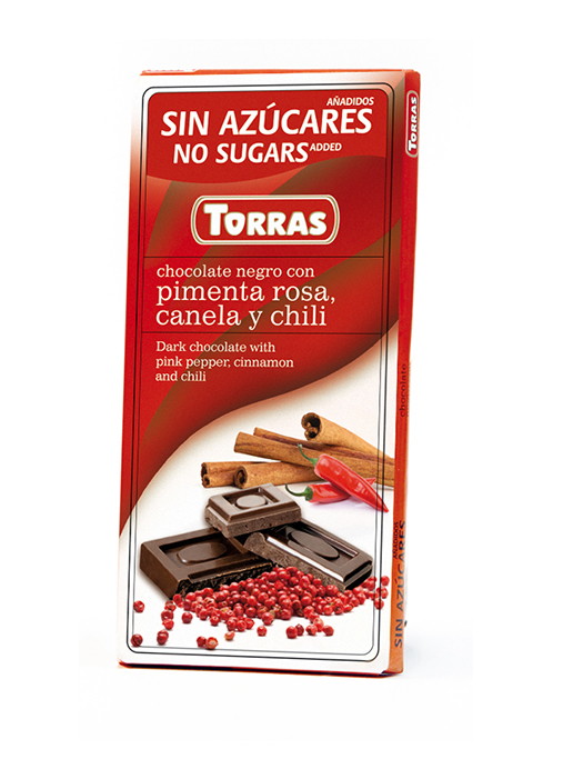 Torras čokolada sa crvenim biberom, cimetom i ljutom paprikom sa zaslađivačima bez šećera.