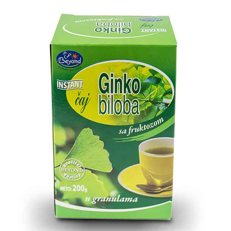 Ginko stimuliše krvne sudove, pojačava cirkulaciju krvi i poboljšava metabolizam u celom organizmu, a posebno u mozgu, čime poboljšava memoriju i koncentraciju. Prirodni instant čaj priprema se za minut.