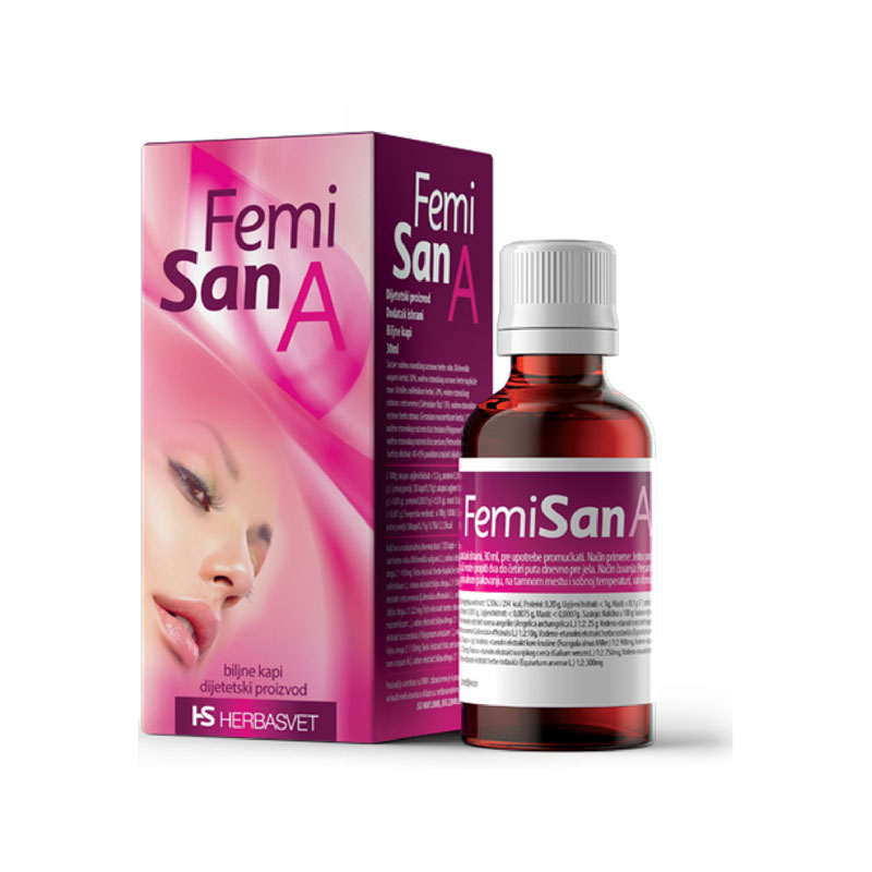 Femisan A biljne kapi za žene, sačinjene su na bazi ekstrakta livadskih bilja virak, hajdučke trave, nevena, zdravca, troskota i peršuna.