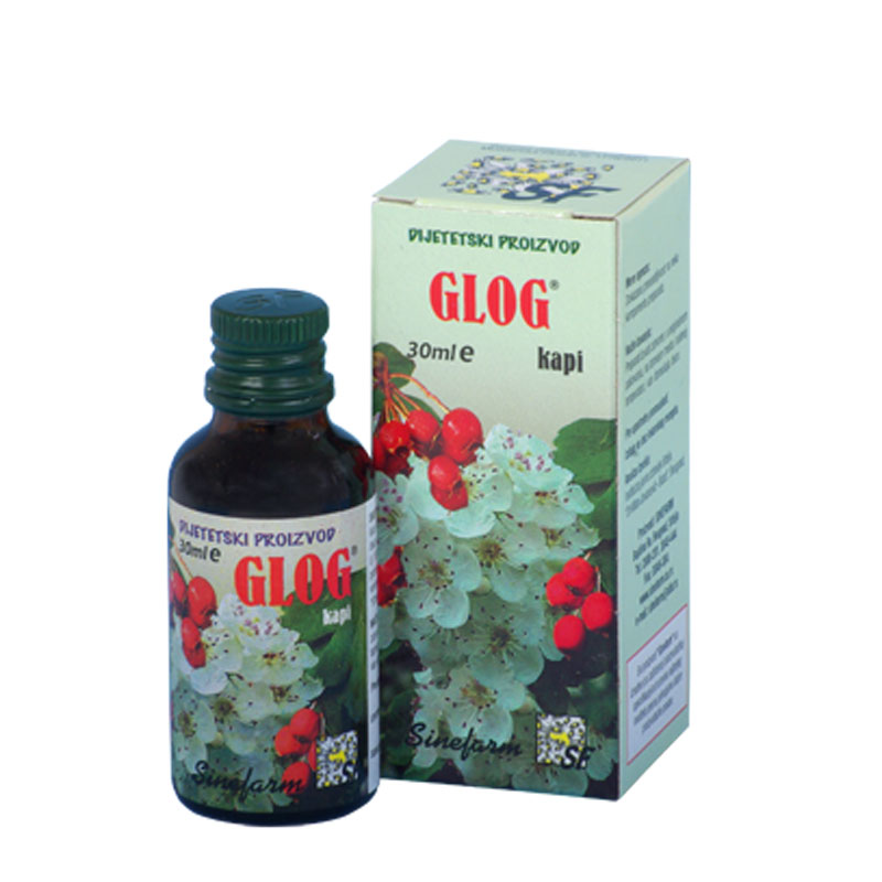 Ekstrakt gloga sadrži flavonske glikozide, sterole, katehine i prostaglandine koji poboljšavaju prokrvljenost srčanog mišića i time mu povećavaju snagu kontrakcije. Crveni glog je kardiotonik, koronarni vazodilatator, hipotenziv i gerijatrik. Povoljno deluje kod blaže forme koronarne insuficijencije (angina pektoris), staračkog srca, poremećaja srčanog ritma, povišenog krvnog pritiska, ateroskleroze, klimakteričnih tegoba i dr.