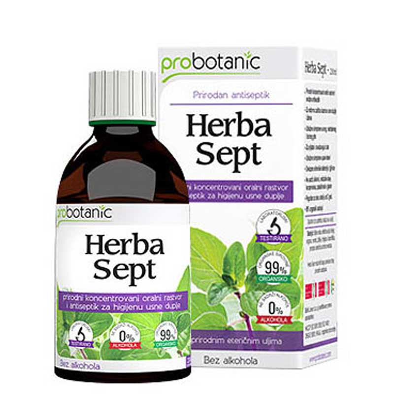 Herba Sept je prirodni proizvod, bez alkohola koji u svom sastavu sadrži eterična ulja divljeg origana, timijana, žalfije, karanfilića, peperminta.