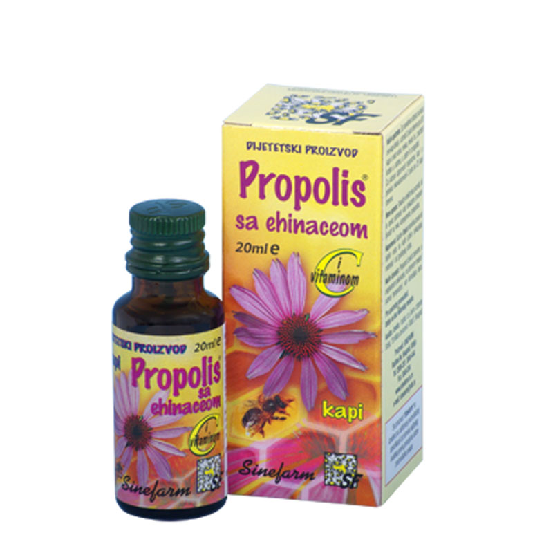 Visoko prečišćeni ekstrakt propolisa i svežeg cveta ehinacee (1:4) u etanolskom rastvoru* sa dodatkom vitamina C.