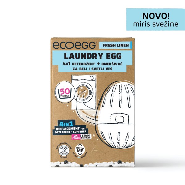 Ovaj inovativni, britanski ECOEGG 4u1 proizvod nije samo deterdžent, već moćna kombinacija deterdženta, omekšivača, izbeljivača na bazi kiseonika i sredstva za uklanjanje fleka. U pitanju je ECOEGG jaje u koje se stavljaju deterdžent-kuglice koje sadrže izbeljivač na bazi kiseonika (bez hlornih izbeljivača) za blistavo belo i sredstvo za uklanjanje fleka za tvrdokorne mrlje, i omekšivač-kuglice.