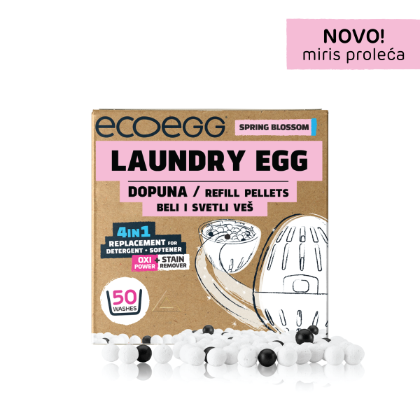 ECOEGG 4u1 Dopunu za deterdžent i omekšivač za beli i svetli veš, kupujete nakon potrošenog pakovanja vašeg ECOEGG 4u1 Deterdženta i omekšivača za beli i svetli veš od 50 pranja, dok vaše ECOEGG jaje možete koristiti iznova i iznova, doprinoseći smanjenju plastičnog otpada! Otvoriti ECOEGG jaje i izbaciti sve stare deterdžent-kuglice (bele) i omekšivač-kuglice (crne). Zatim sipati sve nove deterdžent-kuglice (bele) i omekšivač-kuglice (crne) iz pakovanja, i zatvoriti ECOEGG. Potom, staviti ECOEGG jaje u bubanj preko veša, uključiti željeni program, i pri svakom pranju deterdžent i omekšivač kuglice se doziraju i troše.