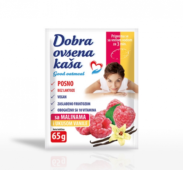 Dobra ovsena kaša predstavlja idealan izbor ukoliko želite da započnete dan zdravim obrokom. Veoma je bogata vlaknima i beta glukanom zbog čega je dobro da se uvrsti u redovnu ishranu. Za proizvodnju Dobre ovsene kaše se koristi najkvalitetnija sirovina, ovas visokog kvaliteta proizveden na poljima Finske, Danske i Nemačke, koji se pretvara u najukusnije instant ovsene pahuljice.