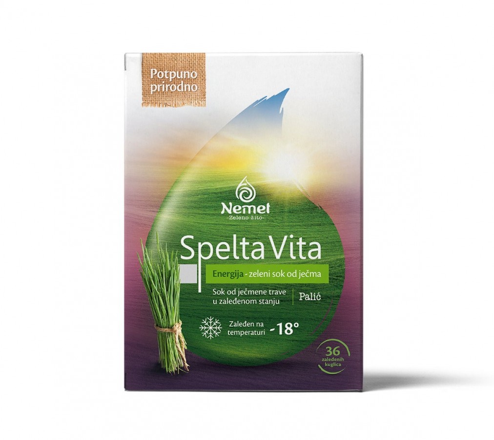 Spelta Vita ENERGIJA-ZELENI SOK OD JEČMA 36 zaleđenih kuglica. Proizvod je namenjen za jačanje imunog sistema i vraćanje ph vrednosti organizma.