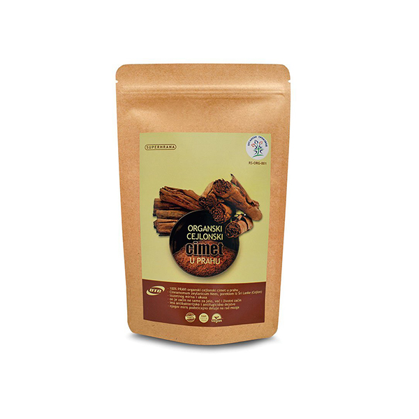 Organski cejlonski cimet u prahu (lat. Cinnamomum zeylanicum nees) je jedini pravi cejlonski cimet. Izuzetno je redak na našem tržištu, pošto je mnogo više zastupljeniji kineski cimet. Za razliku od kineskog cimeta (lat. Cinnamomum cassia) koji raste u Kini i Indoneziji, naš cimet dolazi direktno sa podneblja Šri Lanke (Cejlona). Ono što je najbitnije jeste da sadrži neznatne količine supstance kumarina, a kojom inače obiluje kineski cimet (do 1200 puta više od cejlonskog). Inače, kumarin kod preteranog konzumiranja može da ošteti jetru i bubrege.