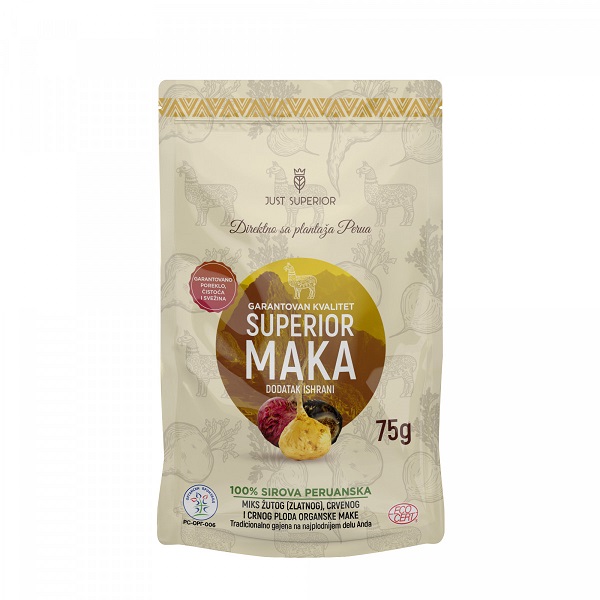 Superior sirova maka je prirodni miks 3 vrste (boje) make – onako kako raste na plantaži (oko 60% žuta, 25% crvena i 15% crna) – što joj daje najširi spektar zdravstvenih benefita i čini je najboljim izborom za većinu ljudi.